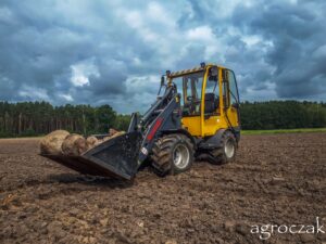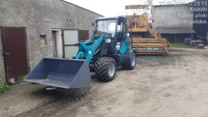 “In my opinion, when it comes to the Schmidt 3639 loader, it is a nice, neat machine, it can fit into tight corners. It has a large lifting capacity for such a small machine. The hydraulics are efficient, you can work with it dynamically. The joystick allows for precise control of the arm. However, you have to be careful for sudden movements so as not to drop the load. Thanks to its wide tires, it is not afraid of even mud. It can easily load manure onto a 6-ton metal spreader, which is quite high considering its load capacity.